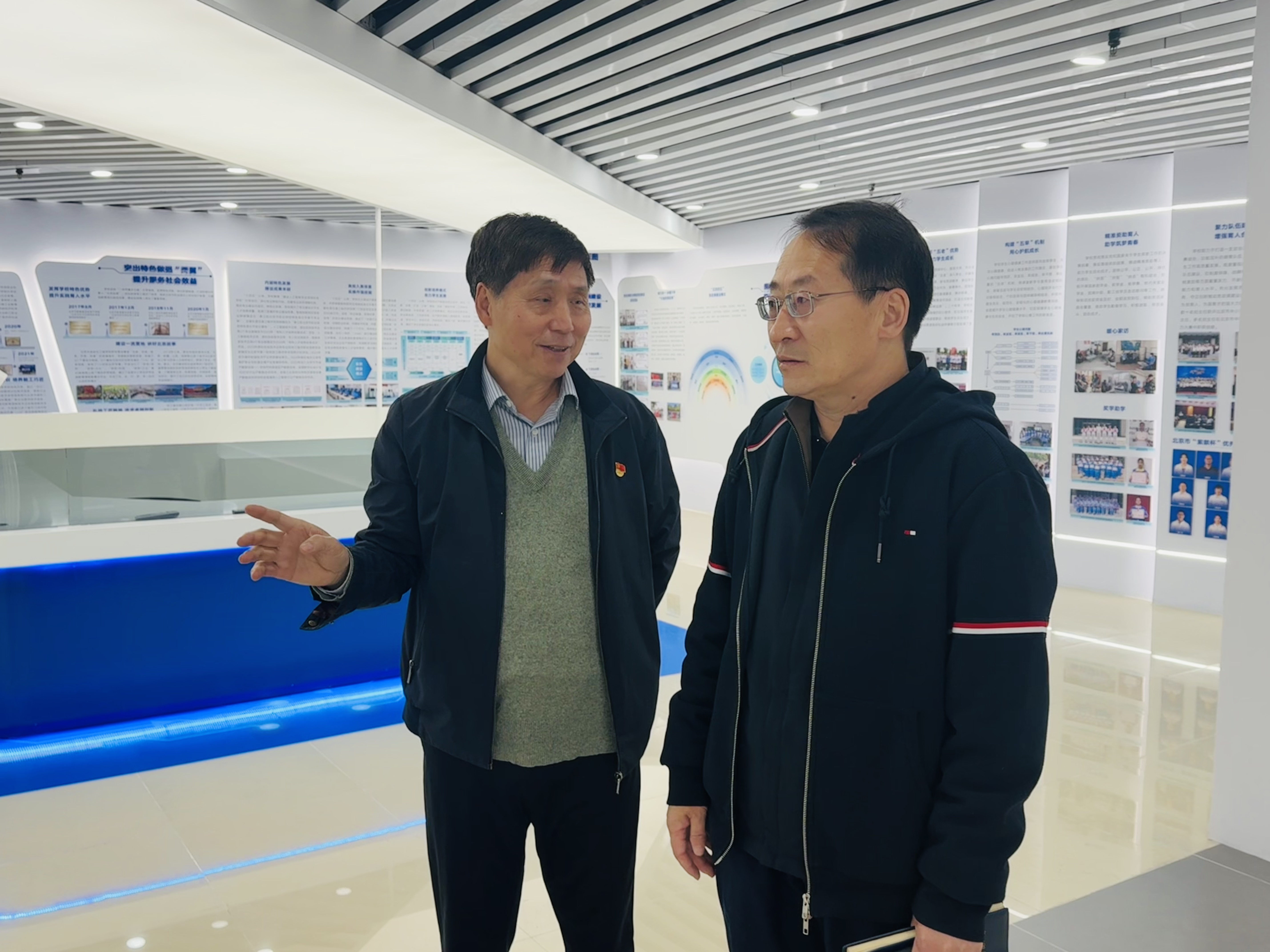 在蔡丰亭书记的陪同下,高杨文一行参观了北京市自动化工程公司校史馆。通过珍贵的历史影像、实物展陈和数字化呈现,深入了解了北京市自动化工程公司“以工为本、德技并修”的育人理念和在自动化、智能制造等领域的专业特色。